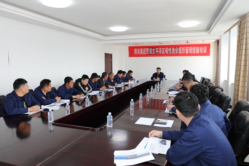 In order to publicize and carry out the provisions of international organizations on ocean-going fishing vessels and fully implement the instructions and requirements of the Ministry and bureau on ocean-going fishing enterprises, the company held a training activity on management measures of Pacific regional fishing organizations in ocean-going industry on April 9. Group company executive vice general Manager Xu Deshu presided over the training and lectures. The persons in charge, managers and captains of oceangoing fishery units of the company attended the training.