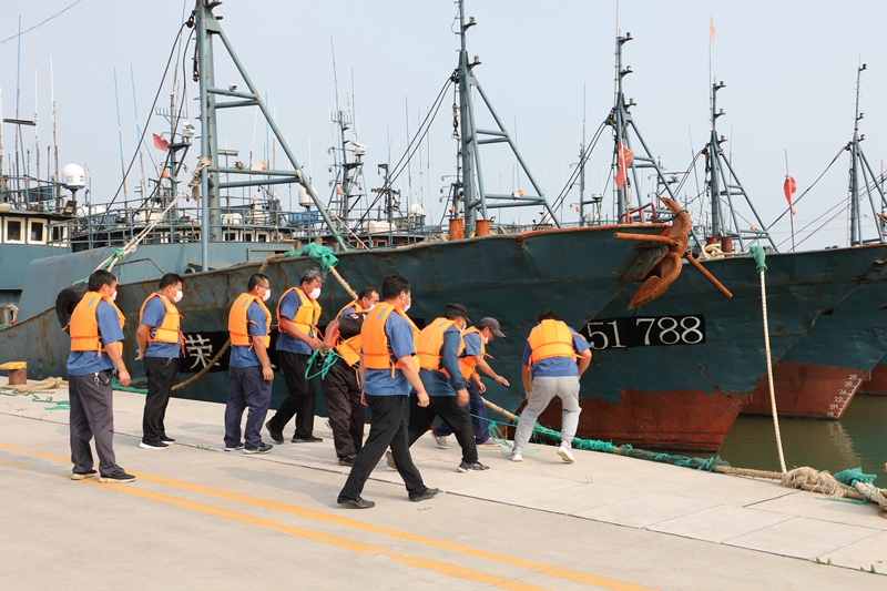 In order to further strengthen the concept of safe development, prevent and resolve major risks and hidden dangers, improve the disaster prevention, mitigation and relief capabilities of all cadres and workers, implement safety responsibilities, and promote safe development, the company on the morning of August 5, at the Shawo Island National Ocean Fishery Base Fishing Port The terminal held an emergency drill for preventing typhoons and falling into water in the third quarter. All employees of Yugang Fishing Boat Corporation participated in the drill.